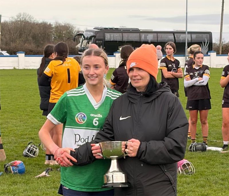 Congratulations to Portumna Community College who won the Senior B Connacht Colleges Final overcoming Holy Rosary Mountbellew 2-9 to 0-8. Goals in either half from Nessa Bloomer and Emma Callanan helped Portumna in getting over the line. This makes it back to back titles for Portumna having won the Senior C title last year. Emma Kennedy was presented with the trophy by Martina Harkin, Connacht Colleges.